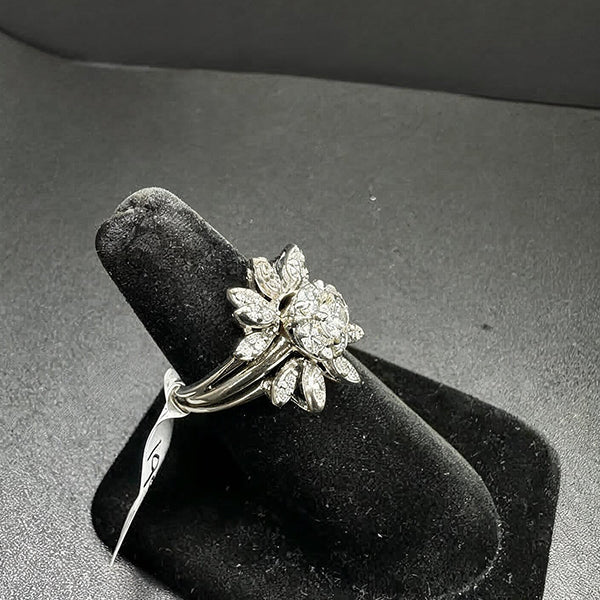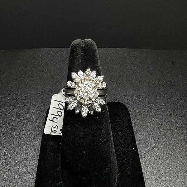14k white gold flower wedding ring set w brilliant cut diamonds, size 8