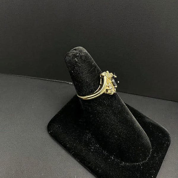 Our 14k yellow gold vintage ring in size 6 combines sapphire stones with diamonds arranged to create a defined layout that reflects its vintage character. Each stone stays firmly positioned, allowing the design to maintain its spacing and overall structure during wear. The gold supports the layout with a steady surface that highlights every detail clearly. Priced at $499, our ring preserves its intended form, presenting its stones with a composed balance suited to regular use and consistent visual clarity.