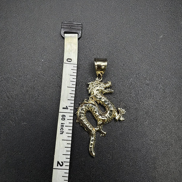 Our 10k yellow gold dragon pendant, available in medium size, is crafted with defined contours that highlight each detail within the design. The polished surface stays consistent through regular wear, allowing the dragon’s shape to remain clear and structured. We formed the pendant to maintain balance when worn, giving the figure a steady outline without heaviness. Its construction holds firmly across use. Valued at $306.99, this piece offers bold detail, stable form, and a distinct presentation suited for enduring daily wear.